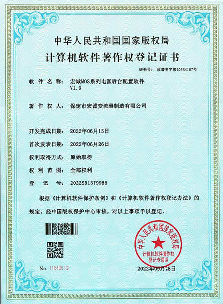 計算機軟件注冊權(quán)登記證書——整流電源開放式測試平臺V1.0