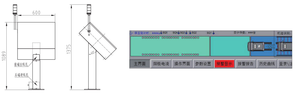 | ■ 采用工業(yè)級一體化控制站,可實(shí)時監(jiān)控分布式電源運(yùn)行狀態(tài),遠(yuǎn)程設(shè)定參數(shù); ■ 實(shí)時動態(tài)顯示電壓、電流曲線以及電泳工件的動畫示意; ■ 為有效防止誤操作,所有參數(shù)設(shè)置具備權(quán)限保護(hù); |